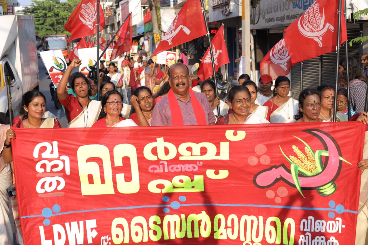 View Allഎൽഡിഎഫ് സ്ഥാനാർത്ഥി ഇ ടി ടൈസൺ മാസ്റ്ററുടെ തെരഞ്ഞെടുപ്പ് പ്രചരണാർത്ഥം നഗരത്തെ ആവേശത്തേരിലേറ്റി ഇടതുപക്ഷ മഹിള സംഘടനകളുടെ നേതൃത്വത്തിൽ ആയിരങ്ങൾ പങ്കെടുത്ത റോഡ് ഷോ നടന്നു