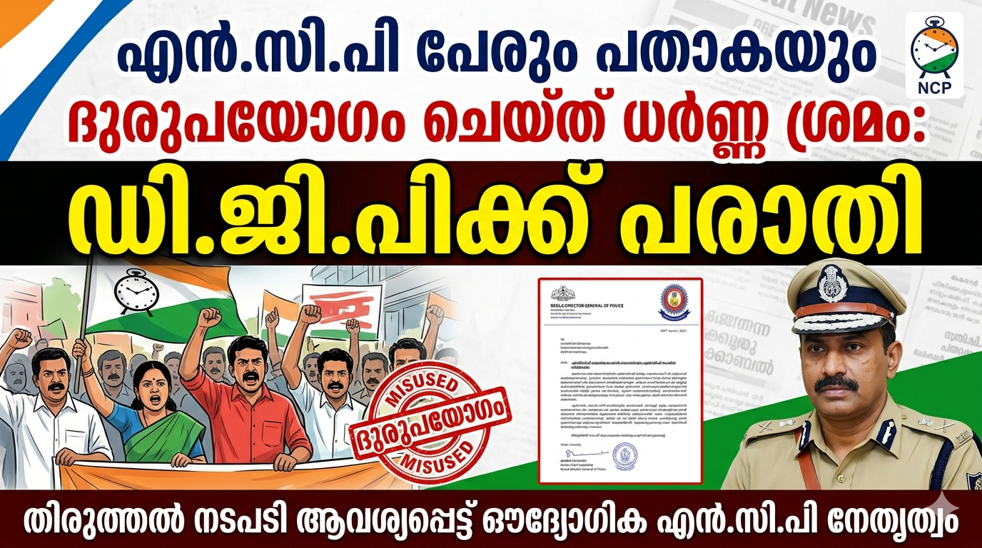 എൻ.സി.പി പേരും പതാകയും ദുരുപയോഗം ചെയ്ത് ധർണ്ണ ശ്രമം: ഡി.ജി.പിക്ക് പരാതി