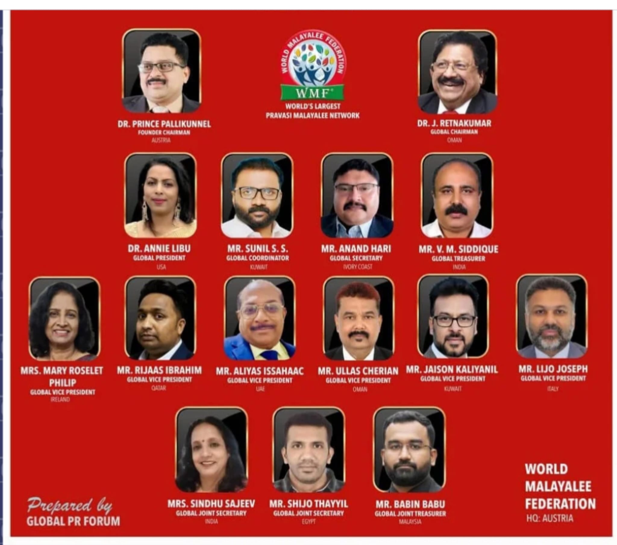 ആഗോള പ്രവാസി മലയാളി സംഘടനയായ വേൾഡ് മലയാളി ഫെഡറേഷന് പുതിയ ഭാരവാഹികളെ തെരഞ്ഞെടുത്തു
