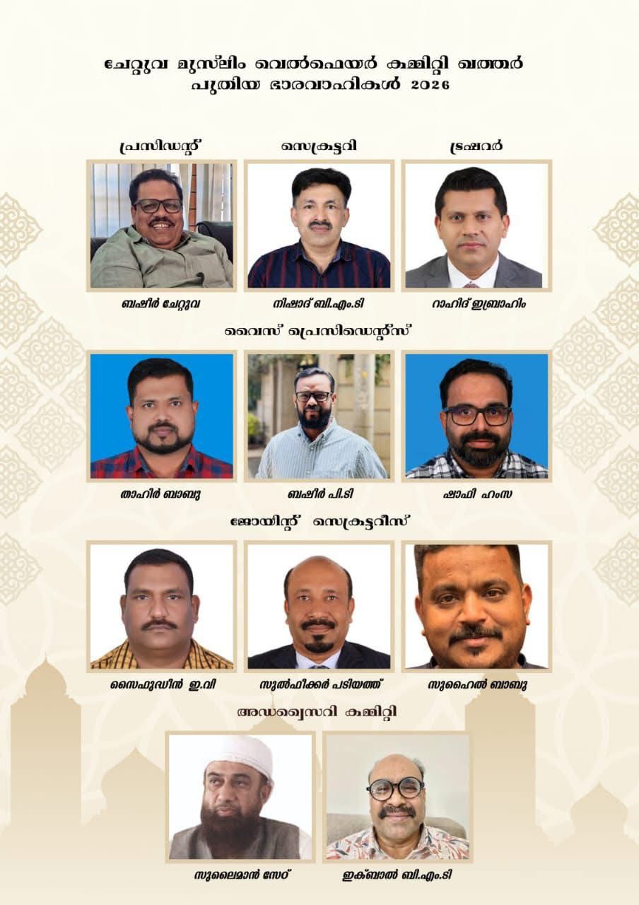 ദോഹ: ചേറ്റുവ മുസ്ലിം വെർഫെയർ കമ്മിറ്റി ഖത്തർ നോമ്പ്തുറയും, ജനറൽ ബോഡിയും സംഘടിപ്പിച്ചു.ഖത്തറിലെ ഏഷ്യൻ ടൗണിലുള്ള സെഞ്ച്വറി റെസ്റ്റോറൻ്റിൽ നടന്ന ജനറൽ ബോഡി യോഗം എം.എച്ച് റഷീദിൻ്റെ പ്രാർഥനയോടെ ആരംഭിക്കുകയും, ജനറൽ സെക്രട്ടറി ബി എം ടി നിഷാദ് സ്വാഗതം ആശംസിക്കുകയും ചെയ്തു. പ്രസിഡണ്ട് ബഷീർ ചേറ്റുവ അദ്ധ്യക്ഷത വഹിച്ചു. സംഘടയുടെ മുതിർന്ന അംഗവും ഉപദേശക സമിതി അംഗവുമായ ഇഖ്ബാൽ ചേറ്റുവ യോഗം ഉദ്ഘാടനം ചെയ്തു.ജനറൽ സെക്രട്ടറി 2023-2026 കാലഘട്ടത്തിലെ പ്രവർത്തന റിപ്പോർട്ട് അവതരിപ്പിക്കുകയും ട്രഷറർ റാഹിദ് ഇബ്രാഹിം അവതരിപ്പിച്ച വരവ് ചിലവ് കണക്കുകൾ ചർച്ച നടത്തുകയും ജനറൽ ബോഡി ഐക്യകണ്ഠേനെ അംഗീകരിക്കുകയും ചെയ്തു.തുടർന്നുള്ള ചർച്ചയിൽ ഇസ്മായിൽ ഹസ്സൻ വരിസംഖ്യ കൃത്യമായി പിരിക്കുകയും അതിലൂടെ സംഘടനയുടെ കൂടുതൽ ആസ്ഥി ഫണ്ട് കണ്ടെത്താനുള്ള ശ്രമം നടത്തണമെന്നും അഭിപ്രായപ്പെട്ടു. തുടർന്ന് പഴയ കമ്മിറ്റിയെ പിരിച്ചുവിടാനും പുതിയ കമ്മിറ്റി രൂപീകരണത്തിനുമായി ഇഖ്ബാൽ ചേറ്റുവ, സമീർ കലന്തൻ, വസീർ അബ്ദുൾ റൗഫ് എന്നിവരെ ചുമതലപ്പെടുത്തുകയും ചെയ്തുപ്രസിഡണ്ട് : ബഷീർ ചേറ്റുവ, ജനറൽ സെക്രട്ടറി: നിഷാദ് ബിഎംടി, ട്രഷറർ: റാഹിദ് ഇബ്രാഹിം. വൈസ് പ്രസിഡണ്ടുമാർ: താഹിർ ബാബു, ബഷീർ പി.ടി, സുഹൈൽ ബാബു.സെക്രട്ടറിമാരായി: ഷാഫി ഹംസ, സുൽഫീക്കർ പടിയത്ത്, സെയ്ഫുദ്ധീൻ.ഉപദേശക സമിതി അംഗങ്ങളായി: സുലൈമാൻ സേട്ട്, ഇക്ബാൽ ബി.എം.ടി എന്നിവരെ കമ്മിറ്റി ഭാരവാഹികളായുംനൗഷാദ് ചേറ്റുവ, ഷാഫി അബ്ദു, റഷീദ് എം.എച്ച്, റഷീദ് പി.എസ്, സിദ്ധീഖ് പി.എസ്, അജ്മൽ റോഷൻ, വസീർ അബ്ദു റൗഫ്, സമീർ കലന്തൻ എന്നിവരെ എക്സിക്യൂട്ടിവ് കമ്മിറ്റി അംഗങ്ങളായും തിരഞ്ഞെടുത്തു.ദീർഘകാലം സംഘടന പ്രവർത്തനം നടത്തുകയും തുടർന്ന് നാട്ടിൽ സ്ഥിരതാമസമാക്കിയെങ്കിലും കമ്മിറ്റിയുമായി ചേർന്ന് നാട്ടിലെ പ്രവർത്തനങ്ങൾക്ക് നേതൃത്വം നൽകിവരുന്ന അഖ്ബർ ചേറ്റുവ, ബിഎംടി റൗഫ് എന്നിവരെ തുടർന്നും നാട്ടിലെ പ്രതിനിധികളായി ഉൾപ്പെടുത്തുകയും ചെയ്തു. കമ്മിറ്റി അംഗം താഹിർ ബാബു നന്ദി രേഖപ്പെടുത്തി യോഗം പിരിയുകയും നോമ്പ് തുറയും ഭക്ഷണവും കഴിച്ച് സഹോദര്യവും, സ്നേഹവും പങ്ക് വെച്ച് എല്ലാവരും പിരിഞ്ഞു.