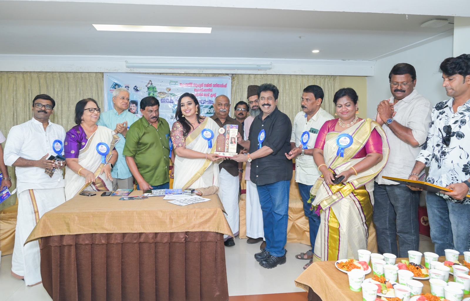 പ്രേം നസീർ സുഹൃത് സമിതി വനിതാ വിംഗിൻ്റെ 2026-ലെ പ്രേം നസീർ വനിതാ രത്ന പുരസ്ക്കാരം ചലച്ചിത്രനടി സോനാ നായർക്ക് ചലച്ചിത്ര അക്കാദമി മുൻ ചെയർമാൻ പ്രേംകുമാർ സമർപ്പിക്കുന്നു. ന്യൂനപക്ഷ കമ്മിഷൻ ചെയർമാൻ അഡ്വ. റഷീദ്, ദൂരദർശൻ മുൻഡയറക്ടർ ജനറൽ കുഞ്ഞികൃഷ്ണൻ, പാളയം ഇമാം സുഹൈബ് മൗലവി, സംഘടന ഭാരവാഹികളായ ഡോ: വാഴമുട്ടം ചന്ദ്രബാബു , ഷംസു ന്നീ സ , തെക്കൻ സ്റ്റാർ ബാദുഷ, പനച്ചമൂട് ഷാജഹാൻ, ഡോ : ഗീതാ ഷാനവാസ്, കുമാർ പൂവാർ, ഷാജിതിരുമല എന്നിവർ സമീപം