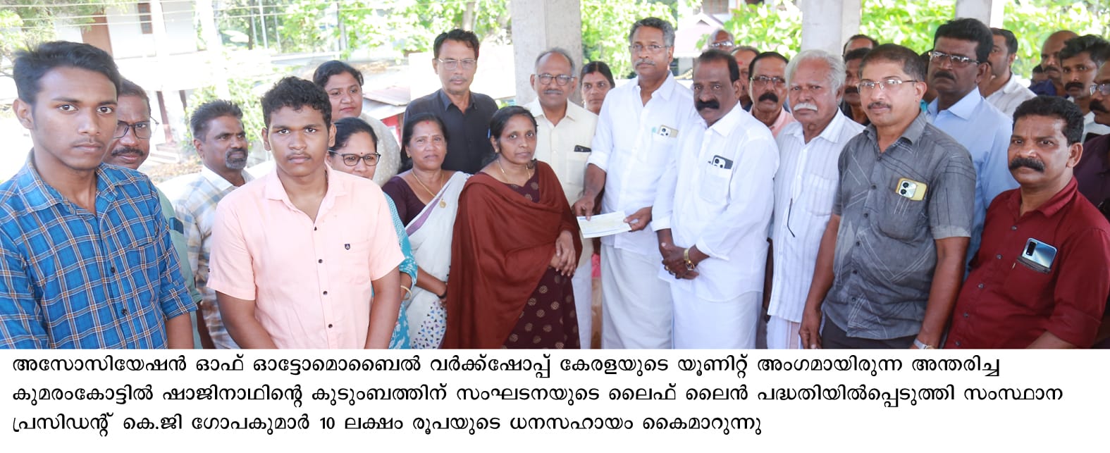 വര്‍ക്ക്‌ഷോപ്പ് ജീവനക്കാരന്റെ കുടുംബത്തിന് വര്‍ക്ക്‌ഷോപ്പ് അസോസിയേഷന്‍ 10 ലക്ഷം രൂപയുടെ ധനസഹായം നല്‍കി