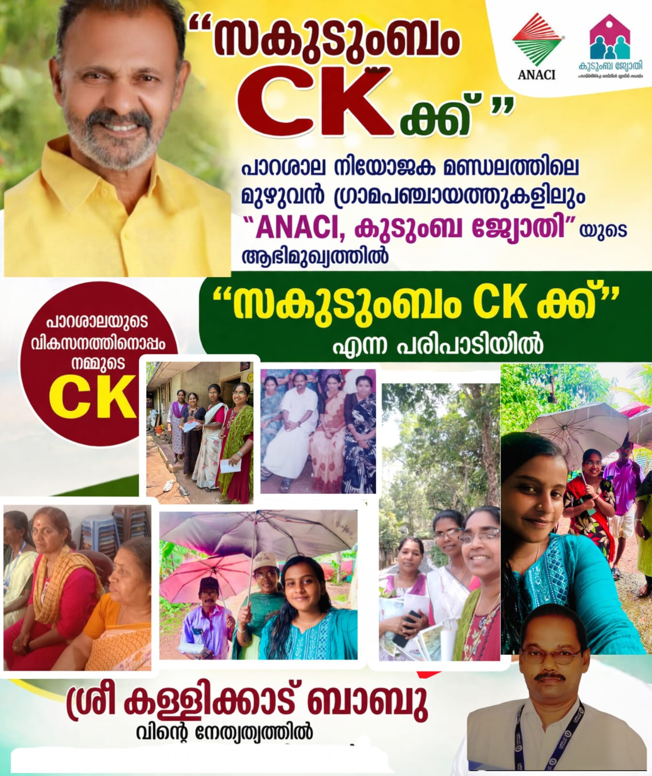തിരു :സ്വാതന്ത്ര്യ ലപ്തിക്ക് ശേഷം കാട്ടിൽ ഒറ്റപ്പെട്ട കഴിഞ്ഞിരുന്നു ഗോത്ര വിഭാഗങ്ങളെ ആകെ, നാടിന്റെ ഭാഗമായി തീർത്ത പാറശാല കണ്ടിട്ടുള്ളതിൽ വെച്ച് ഏറ്റവും മികച്ച എംഎൽഎ ശ്രീ സി കെ ഹരീന്ദ്രൻ ആണെന്ന്, മികച്ച സംഘാടകനും, സംഘാടക മികവ് തെളിയിച്ച്, ലോക അംഗീകാരം നേടിയിട്ടുള്ള കള്ളിക്കാട് ബാബു അഭിപ്രായപ്പെട്ടു. തന്റെ സംഘടനാ പ്രവർത്തകരുമായ ബന്ധപ്പെട്ട് ” സകുടുംബം സി കെ. ക്ക് എന്ന ഇലക്ഷൻ ക്യാംപെയിൻ രാഷ്ട്രീയ ഭേദമെന്നേ നടത്തുന്ന തിന്റെ ഭാഗമായി സംസാരിക്കുകയായിരുന്നു അദ്ദേഹം.10വർഷം കൊണ്ട് വികസനത്തിന്റെ അസ്ഥി വാരം ഉറപ്പിച്ചു. അടുത്ത 10വർഷം കൂടി അദ്ദേഹത്തിന് അവസരം കൊടുത്താൽ വികസനത്തിന്റെ തേരോട്ടം നയിച്ചു പാറശ്ശാലയിൽ ലോക ഭൂപടത്തിൽ എത്തിക്കുമെന്ന് അദ്ദേഹം അഭിപ്രായപ്പെട്ടു. RTD ജഡ്ജ് AK ഗോപകുമാർ പരിപാടി ഫ്ലാഗ് ഓഫ് ചെതു.