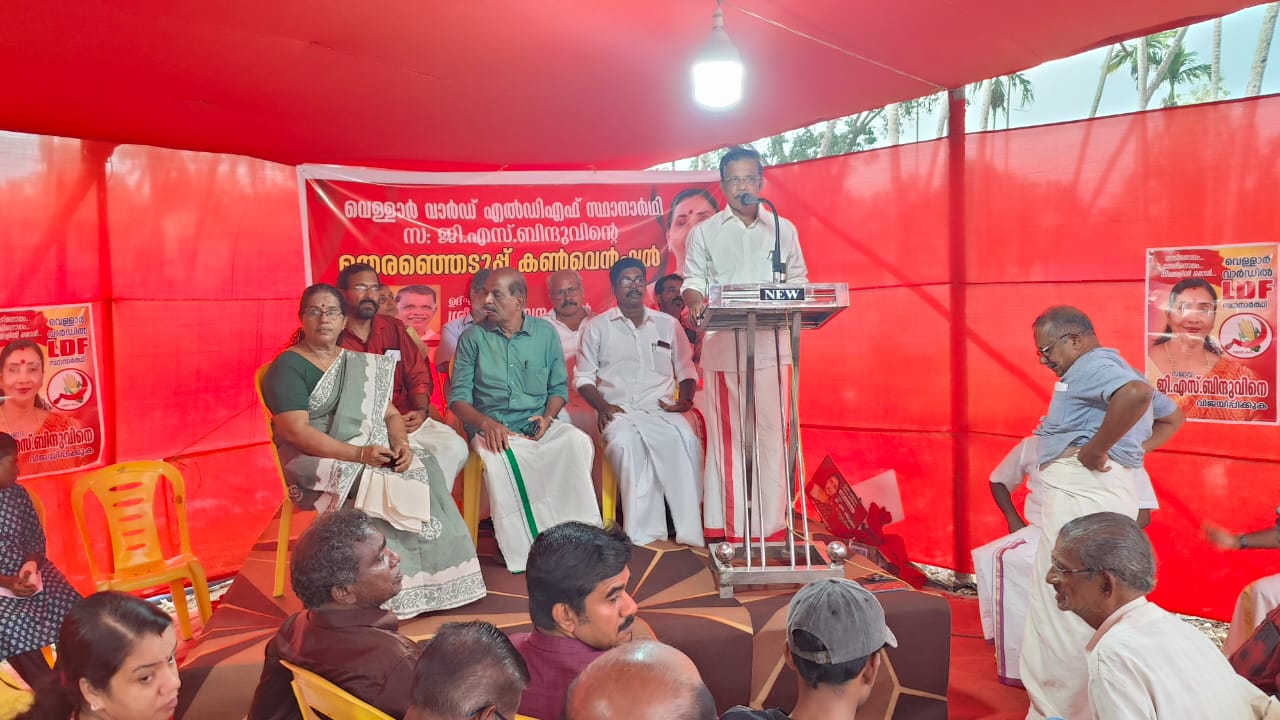 ഇടതുപക്ഷ ജനാധിപത്യ മുന്നണി സ്ഥാനാർത്ഥിയായി വെള്ളാർ വാർഡിൽ മത്സരിക്കുന്ന. സഖാവ്.ജി. എസ്. ബിന്ദുവിനെ വിജയിപ്പിക്കുന്നതിന് വേണ്ടിയുള്ള പ്രവർത്തനങ്ങൾക്ക് രൂപം നൽകുവാൻ LDf വെള്ളാർ വാർഡ് കൺവെൻഷൻ നടത്തി. Dr. സജീവ്കുമാറിന്റെ അധ്യക്ഷതയിൽ കൂടിയ കൺവെൻഷൻ cpi(m ) ജില്ലാ കമ്മിറ്റി അംഗം. പി. രാജേന്ദ്രകുമാർ ഉദ്ഘാടനം ചെയ്തു. വെള്ളാർ സാബു സ്വാഗതം പറഞ്ഞു. സഖാക്കൾ, കെ. എസ്. മധുസൂദനൻ നായർ, അനൂപ്, കാലടി പ്രേമചന്ദ്രൻ, പനത്തുറ.പി.ബൈജു ശ്രീകുമാരി,എം. അനിൽകുമാർ, തുടങ്ങിയവർ സംസാരിച്ചു. ഡി. ജയകുമാർ നന്ദി പറഞ്ഞു. സംഘാടകസമിതി ചെയർമാനായി ഡോക്ടർ. സജീവ്കുമാർ ജനറൽ കൺവീനറായി പനത്തുറ. പി ബൈജു അടങ്ങിയ 101 അംഗ കമ്മറ്റിക്ക് രൂപം നൽകി.