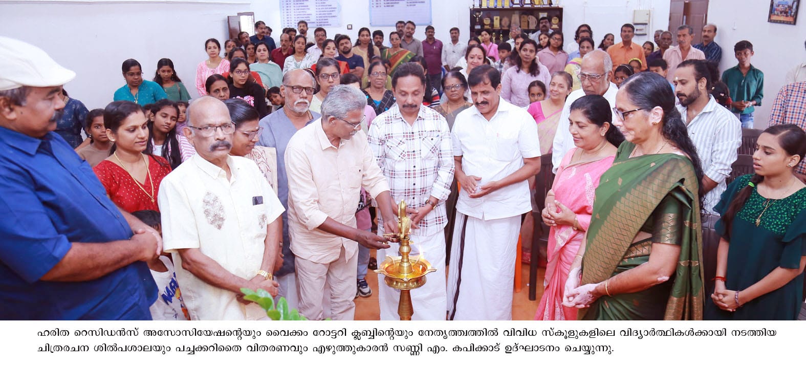 വൈക്കം ; ഹരിത റെസിഡന്സ് അസോസിയേഷന്റെയും വൈക്കം റോട്ടറി ക്ലബ്ബിന്റെയും നേതൃത്ത്വത്തില് വൈക്കം നഗരസഭ പരിതിയിലുള്ള 4 മുതല് 10 വരെയുള്ള ക്ലാസ്സുകളില് പഠിക്കുന്ന വിദ്യാര്ത്ഥികള്ക്കായി ഏക ദിന ചിത്രരചന ശില്പശാലയും കൃഷിയെ പ്രോത്സാഹിപ്പിക്കാനുള്ള പച്ചക്കറി തൈ വിതരണവും നടത്തി. ജയലക്ഷ്മി ജീവന് രചിച്ച ‘ ചിലപ്പ് ഓരോരോ തോന്നലുകള് ‘ എന്ന കവിതയുടെ പ്രകാശനവും നടത്തി. സമ്മേളനം എഴുത്തുകാരന് സണ്ണി എം. കപിക്കാട് ഉദ്ഘാടനം ചെയ്തു. പ്രസിഡന്റ് ജീവന് ശിവറാം അധ്യഷത വഹിച്ചു, സെക്രട്ടറി പി. എന്. സന്തോഷ്കുമാര്, വേണുഗോപാല്, നളിനി വേണുഗോപാല്, കെ. ആര്. ബീന, റോട്ടറി ക്ലബ്ബ് പ്രസിഡന്റ് നിമ്മി ജെയിംസ്, കെ. രമേശന്, ടൗണ് റോട്ടറി ക്ലബ്ബ് പ്രസിഡന്റ് കെ. എസ്. വിനോദ്, ലൈബ്രറി കൗണ്സിലര് സെക്രട്ടറി ആര്. പ്രസന്നന്, പി. സി. മേനോന്, വൈസ് പ്രസിഡന്റ് നന്തുലാല് ശാന്തിപുഷ്പം, കൗസല്യ ബാബു, ആര്. രാജേഷ് എന്നിവര് പ്രസംഗിച്ചു.