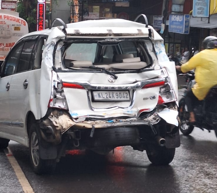 കാറിന് പിന്നിൽ സ്വകാര്യ ബസ്സിടിച്ച് അപകടം;സ്റ്റീഫൻ ജോർജ് എക്സ് എം എൽ എക്ക് പരിക്ക്