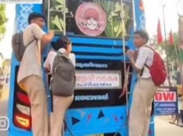 ഓടുന്ന ബസിന്റെ പിന്നിൽ കയറി വിദ്യാർഥികളുടെ റീൽസ് ചിത്രീകരണം