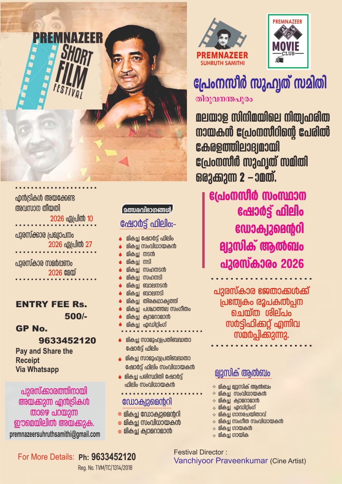 പ്രേംനസീർ ഷോർട്ട് ഫിലിം: എൻട്രികൾ ക്ഷണിക്കുന്നു