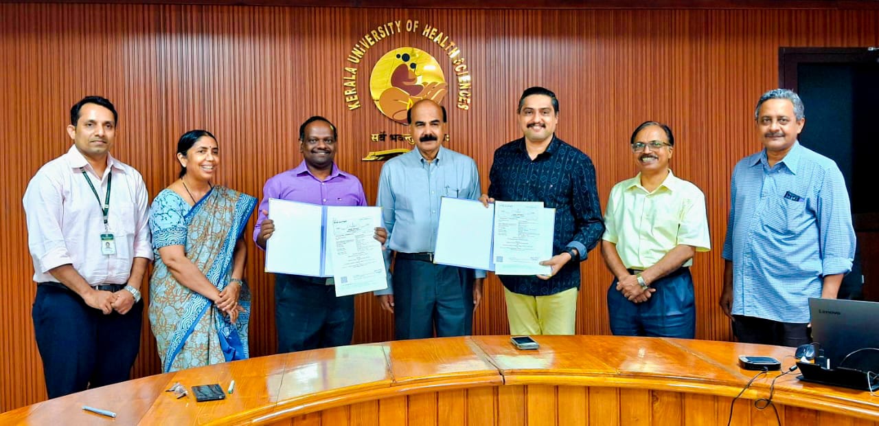 തൃശൂർ :മെഡിക്കൽ ഹൗസ് സർജൻസിനായി കേരള ആരോഗ്യശാസ്ത്ര സർവകലാശാലയും തിരുവനന്തപുരം ഇൻസ്റ്റിറ്റ്യൂട്ട് ഓഫ് പാലിയേറ്റീവ് സയൻസസ് (TIPS), പാലിയം ഇന്ത്യയും സംയുക്തമായി നടത്തുന്ന 60 മണിക്കൂർ ദൈര്‍ഘ്യമുള്ള പാലിയേറ്റീവ് കെയർ ലേർണിംഗ് പ്രോഗ്രാമിനായി ആരോഗ്യ ശാസ്ത്ര സർവകലാശാലയ്ക്കായി രജിസ്ട്രാർ ഡോ. എസ്. ഗോപകുമാറും തിരുവനന്തപുരം ഇൻസ്റ്റിറ്റ്യൂട്ട് ഓഫ് പാലിയേറ്റീവ് സയൻസസിനായി ഡോ.എം.എം സുനിൽകുമാറും ചേർന്ന് ആരോഗ്യശാസ്ത്ര സർവകലാശാല ആസ്ഥാനത്ത്‌ വച്ച് 13.10.2025 -ന് ധാരണാപത്രത്തിൽ ഒപ്പുവച്ചു. കേരള ആരോഗ്യ ശാസ്ത്ര സർവകലാശാല വൈസ് ചാൻസലർ ഡോ. മോഹനൻ കുന്നുമ്മൽ, പ്രോ വൈസ് ചാൻസലർ ഡോ.സി.പി വിജയൻ, അക്കാദമിക് ഡീൻ ഡോ.ബിനോജ്.ആർ, റിസർച്ച് ഡീൻ ഡോ.ഷാജി കെ. എസ്, സ്കൂൾ ഓഫ് ഫാമിലി ഹെൽത്ത് സ്റ്റഡീസ് പ്രൊഫസർ & ഹെഡ് ഡോ.ഗീത എം. ഗോവിന്ദരാജ്, അസ്സോസിയേറ്റ് പ്രൊഫസർ ഡോ. അനൂപ് കുമാര്‍.എൻ എന്നിവർ സന്നിഹിതരായിരുന്നു.