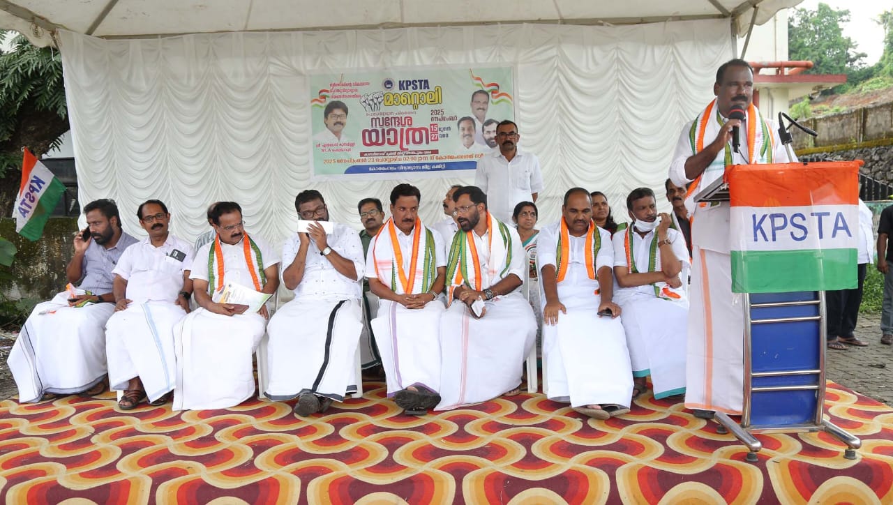 കോതമംഗലം: കാസർഗോഡ് നിന്ന് കെ പി എസ് ടി എ സംസ്ഥാന കമ്മറ്റിയുടെ നേതൃത്വത്തിൽ ആരംഭിച്ച പൊതുവിദ്യാഭ്യാസ പരിവർത്തന സന്ദേശ യാത്ര “മാറ്റൊലി” ജാഥക്ക് കോതമംഗലം മിനി സിവിൽ സ്റ്റേഷനിൽ, ഡി സി സി ഭാരവാഹികൾ , സർവീസ് സംഘടനാ നേതാക്കൾ, പെൻഷൻ സംഘടനകൾ, പൊതുപ്രവർത്തകർ തുടങ്ങിയവർ ചേർന്ന് വിപുലമായ സ്വീകരണം നൽകി. സ്വീകരണ സമ്മേളനം ഡിസിസി ജനറൽ സെക്രട്ടറി അബു മൊയ്തീൻഉദ്ഘാടനം ചെയ്തു. സംഘാടക സമിതി ചെയർമാൻ കോൺഗ്രസ്സ് ബ്ലോക്ക് പ്രസിഡൻ്റ് ഷെമീർ പനയ്ക്കൽ അധ്യക്ഷത വഹിച്ചു. ബാബു ഏലിയാസ്, എം.എസ് എൽദോസ്, മുനിസിപ്പൽ കൗൺസിലർ സിന്ധു ജിജോ, പി.ആർ അജി, ജയിംസ് കോറമ്പേൽ , ജാഥാ ക്യാപ്റ്റൻ കെ. അബ്ദുൾമജീദ്, മാനേജർ പി.കെ.അരവിന്ദൻ, കോഓർഡിനേറ്റർ അനിൽ വട്ടപ്പാറ ,നേതാക്കളായ ടി.യു. സാദത്ത്, വിൻസെൻ്റ് ജോസഫ്,രജ്ഞിത്ത് മാത്യു, അജിമോൻ പൗലോസ്, സിബി ജെഅടപ്പൂർ, ബിജി തോമസ്, റോയി മാത്യു, എൽദോ സ്റ്റീഫൻ, സിജു ഏലിയാസ് തുടങ്ങിയവർ പ്രസംഗിച്ചു. സർവ്വീസിലുള്ള മുഴുവൻ അധ്യാപകരെയും കെ.ടെറ്റ് യോഗ്യതയിൽ നിന്നും ഒഴിവാക്കുക.എല്ലാ അധ്യാപകർക്കും നിയമനാംഗീകാരവും ജോലി സംരക്ഷണവും ഉറപ്പാക്കുക.നിഷേധിച്ച ആനുകൂല്യങ്ങളും, ശമ്പള പരിഷ്കരണവും ഉടൻ ലഭ്യമാക്കുക.ഡി എ കുടിശ്ശിക അനുവദിക്കുക.സ്റ്റാറ്റ്യൂട്ടറി പെൻഷൻ പുന:സ്ഥാപിക്കുക.യു.ഐ.ഡി ഉള്ള മുഴുവൻ കുട്ടികളെയും പരിഗണിച്ച് തസ്തിക നിർണ്ണയം നടത്തുക.ഭിന്നശേഷിയുടെ പേരിൽ തടഞ്ഞു വച്ചിരിക്കുന്ന മുഴുവൻ നിയമനങ്ങൾക്കും അംഗീകാരം നൽകുക.ദിവസ വേതനക്കാരുടെ വേതനം തടയുന്ന സർക്കാർ വിവാദ സർക്കുലർ പിൻവലി ക്കുക.അധ്യാപകർക്കും ജീവനക്കാർക്കും വിശ്വാസ്യയോഗ്യമായ ആരോഗ്യ സുരക്ഷ പദ്ധതി നടപ്പിലാക്കുക.വിദ്യാഭ്യാസരംഗത്തെ കാവിവത്കരണവും, ചുവപ്പുവത്കരണവും അവസാനിപ്പിക്കുകഎന്നീ ആവശ്യങ്ങൾ മുന്നോട്ടുവച്ചാണ് കാസർഗോഡ് മുതൽ തിരുവനന്തപുരം വരെ ‘മാറ്റൊലി’ ജാഥ സംഘടിപ്പിച്ചിരിക്കുന്നത്.ക്യാപ്ഷൻ :കെ പി എസ് ടി എ സംസ്ഥാന സമിതി സംഘടിപ്പിച്ചിട്ടുള്ള പൊതു വിദ്യാഭ്യാസ പരിവർത്തന സന്ദേശ യാത്ര മാറ്റൊലിക്ക് കോതമംഗലത്ത് നൽകിയ സ്വീകരണ സമ്മേളനത്തിൽ ജാഥാ ക്യാപ്റ്റൻ കെ അബ്ദുൽ മജീദ് പ്രസംഗിക്കുന്നു
